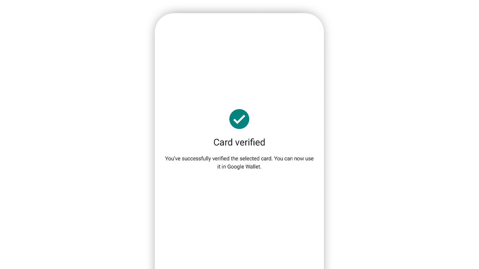 Step 4: You will see a green tick, indicating your credit card-i has been successfully added to your Google Wallet.